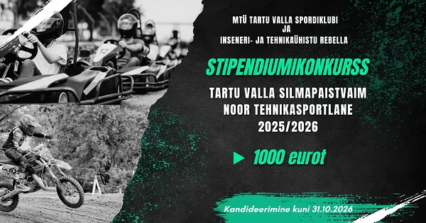 Tartu Valla Spordiklubi koostöös inseneri- ja tehnikaühistuga Rebella kuulutab välja stipendiumikonkursi „Tartu Valla silmapaistvaim noor tehnikasportlane 2025/2026“. Rohkem lisainfot: stipendiumikonkurss